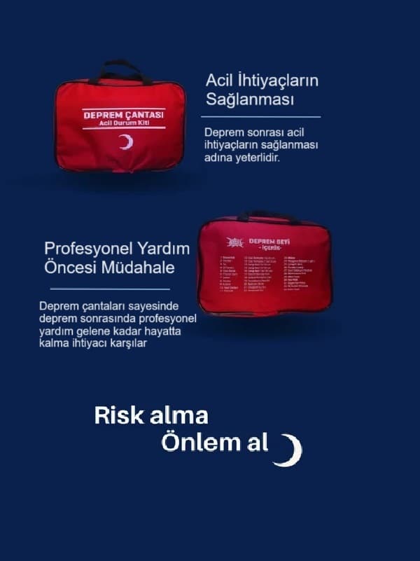 Deprem, su baskını, yangın gibi doğal afetlerde kişilerin yaşam ihtiyaçlarını karşılayan ürünleri ve ilk yardım malzemelerini içeren uzmanlarca hazırlanan bir settir.